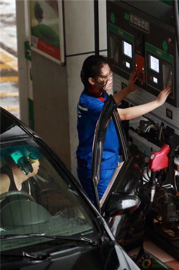 冒雨进行油量检测。