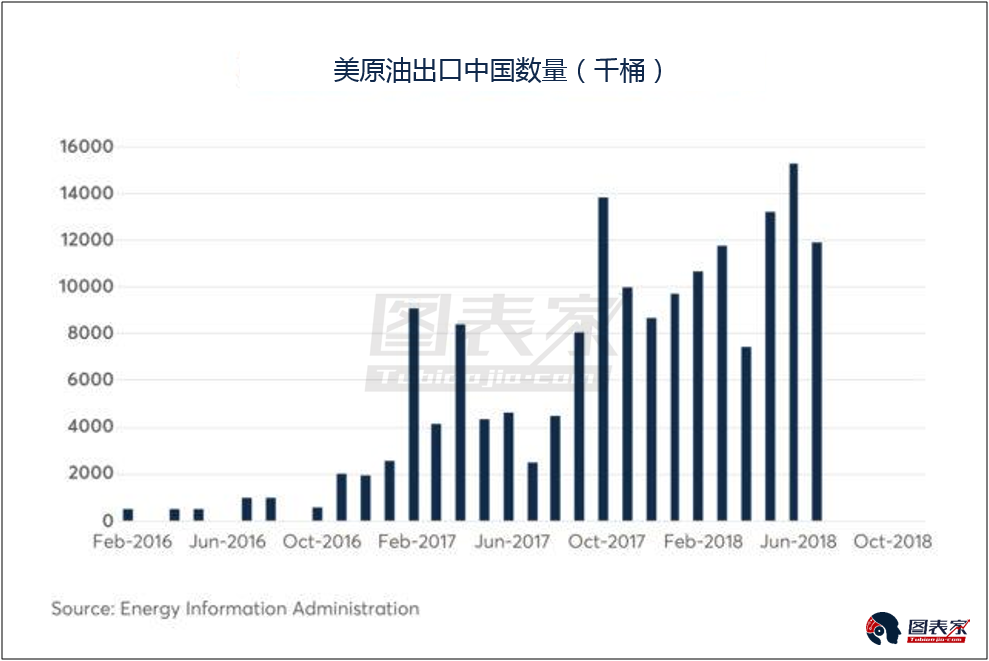 虽然对于美国出口商来说缺少中国的需求也没有减少原油出口总量(原油出口在2018年末持续上升,于10月创7200万桶历史新高)。但长期来看,美国原油缺少中国这一强劲买家是极大损失。