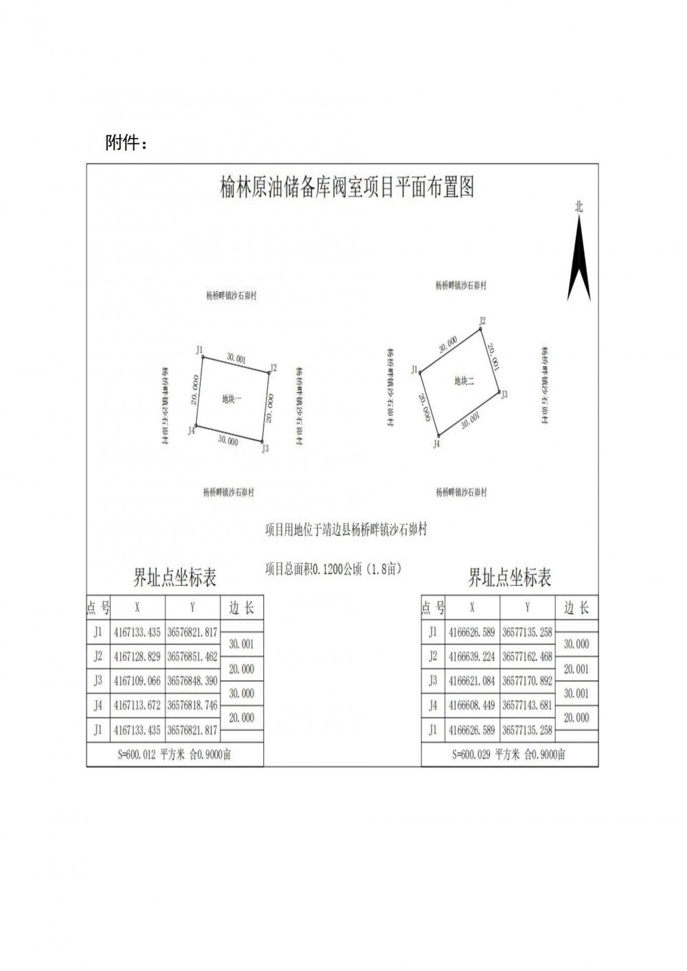 本次拟征收土地位于靖边县杨桥畔镇沙石峁村,拟征收土地面积0.1200公顷,四至范围以榆林原油储备库阀室项目平面布置图为准(详见附件)。