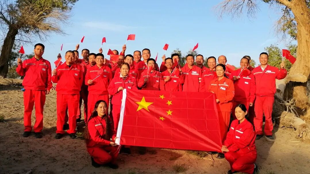 塔河项目部与国旗合影