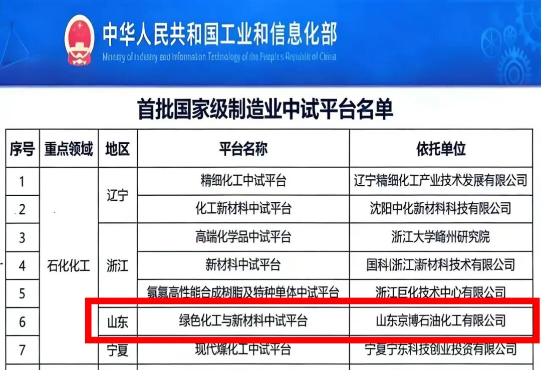 工信部首批国家级制造业中试平台是工信部布局建设中试生态体系的核心力量。此次平台的成功入选,是对其技术体系建设、市场化运营和服务产业发展方面的充分肯定。作为京博石化牵头搭建的行业共享生态服务平台,未来将持续聚焦战略新兴与未来产业核心领域,深度链接产业客户需求,整合行业资源、汇聚创新力量,为全行业提供更优质、更高效的中试服务,助力构建协同共生的产业创新生态,为推动制造业高质量发展、加快新型工业化建设注入强劲动能。